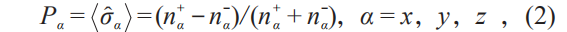 其中 nα+ 与 nα- 分别是沿 x、y、z 方向测量时,正向自旋与反向自旋的中子总个数。(2)式定义了极化中子实验中极化率的测量方式,即进行极化中子实验测量的基本方法。