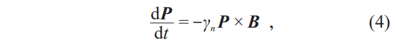 中子的自旋极化在外磁场中会产生进动,称为拉莫尔进动(Larmor precession),这种进动可以表述为极化矢量 P 的动力学方程: