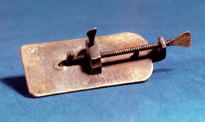 图2 最早的光学显微镜。1673年列文虎克首次使用这个装置观察微生物