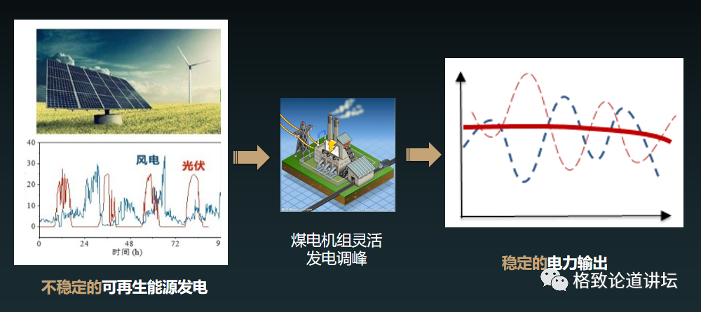 那么怎么实现调峰?有的人说,储能可以解决这个问题。但是别忘了,我国煤电一年烧掉16亿吨,储能的技术还不能够实现这种大规模的长周期的调峰。