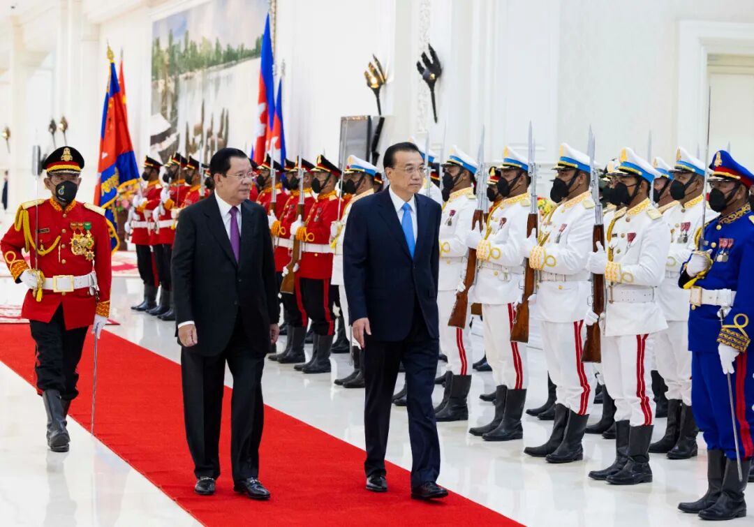 李克强表示,中柬传统友谊深厚,拥有高度政治互信,各领域务实合作成果丰硕。习近平主席2016年成功访问柬埔寨,2020年为莫尼列太后颁授“友谊勋章”,为两国友好再续新的篇章。首相先生是新冠肺炎疫情突发之际首位访华的外国领导人,给中国人民留下深刻印象。疫情发生近三年来,我首次出访即到金边出席东亚合作领导人系列会议并正式访问柬埔寨,感到非常高兴。中方祝贺柬经济社会取得新的发展。中方一向主张大小国家一律平等,各国都遵守联合国宪章宗旨原则,支持柬方走符合本国国情的发展道路,支持柬在国际和地区舞台发挥更加重要的作用,愿同柬方密切高层交往与沟通,在涉及彼此核心利益和重大关切问题上相互支持,推动中柬全面战略合作伙伴关系持续健康发展,更好造福两国人民。李克强指出,中方愿同柬方以明年两国建交65周年为契机,办好“中柬友好年”系列活动。支持柬提升农业科技化、产业化水平,扩大进口柬优势农产品,推进大项目建设,支持柬加快推进工业化。帮助柬开展扫雷行动,落实好援柬道路、医疗、供水等项目,为柬改善民生提供力所能及的帮助。深化科技、教育、文化等领域合作,增加两国直航航班,欢迎柬留学生赴华学习。李克强强调,一个稳定、发展、繁荣的柬埔寨对维护地区稳定和发展、促进中国和东盟关系具有重要意义。中方全力支持柬埔寨作为东盟轮值主席国办好东亚合作领导人系列会议,坚定支持东盟团结和中心地位,支持东盟主导的区域合作架构,支持东盟为促进国际地区和平与发展发挥更大作用。洪森表示,柬中是铁杆朋友,柬中友谊得到柬人民拥护支持,双方合作大有可为。柬方坚定奉行一个中国政策,支持共建柬中命运共同体,愿同中方共同办好明年两国建交65周年纪念活动,加强贸易、投资、农业、能源、基础设施、公共卫生、人文等领域的交流合作,推动两国关系与合作深入发展。柬方尊重联合国宪章关于维护各国主权和领土完整的原则,愿同中方在多边框架下密切协调配合,共同维护地区和世界和平稳定与发展。会谈后,两国总理共同见证中柬农业、基础设施、教育、中医药、海关、科技、应对气候变化等领域十多项双边合作文件的签署,出席金边至西哈努克港高速公路通车暨配套民生工程项目移交仪式。中柬双方将发表联合公报。会谈前,洪森在和平大厦为李克强举行隆重欢迎仪式。两国总理登上检阅台,军乐队高奏中柬两国国歌。李克强在洪森陪同下检阅了仪仗队。当日下午,李克强分别向柬独立纪念碑和西哈努克太皇雕像献花圈。![]()