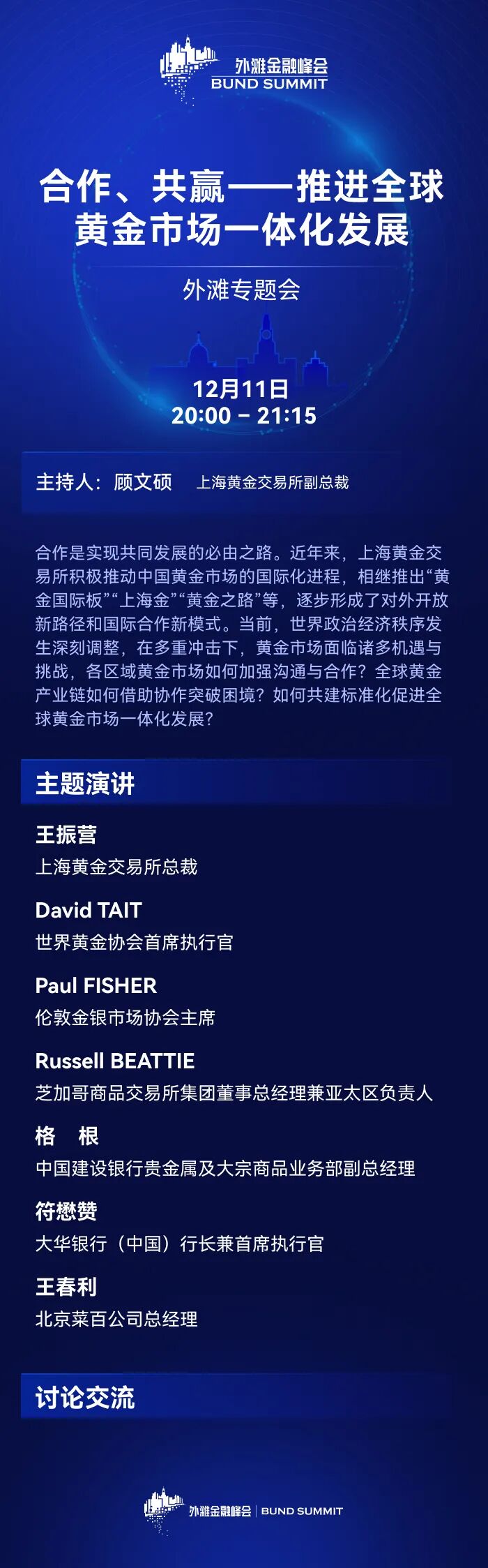 外滩专题会“合作、共赢——推进全球黄金市场一体化发展”