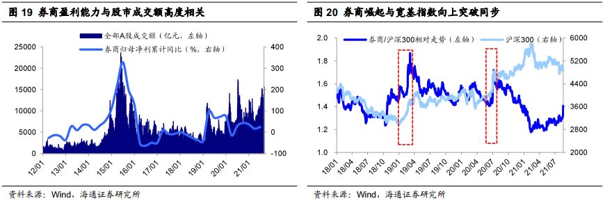 首先是低估的大金融。过去一段时间我们一直坚定看好大金融的核心逻辑在于随着稳增长政策发力,经济下行压力被对冲以及房地产债务担忧消退,银行、地产有望迎来估值修复。当前地产政策面已经出现积极变化,信用风险担忧有望下降。2022/1/20住建部工作会议中提出把防风险摆在更加突出的位置,坚决有力处置个别头部房地产企业房地产项目逾期交付风险。近期银行、地产已经有所表现,但大金融板块整体估值依然处于低位,当前(2022/01/21,下同)PE(TTM)来看,银行为6.4倍(处13年初以来38.3%分位)、房地产为8.6倍(处11.6%分位)、证券为20.0倍(处23.1%分位),PB(LF)来看,银行为0.6倍(处3.1%分位)、房地产为1.0倍(处5.4%分位)、证券为1.7倍(处33.1%分位),且在基金持仓中相对沪深300均是低配。大金融中最值得重视的是券商。2019、2020年券商净利润同比分别为75%、36%,对应券商指数全年最大涨幅为56%、55%,而21年前三季度券商净利润累计同比为24%,申万券商指数21年还下跌了4.2%。历史上券商往往是在指数突破重要关口时大幅上涨,例如2019年上证综指突破3000点前后券商开始加速上涨,2020年上证综指突破3500点前后券商开始加速上涨。