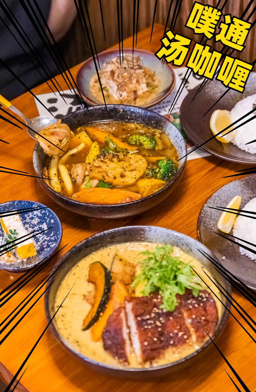 太夸张了,太夸张了......刚开门就已经坐满了,刚坐下就已经售空了,这家汤咖喱真真是把好料菌的好奇心拉满了。