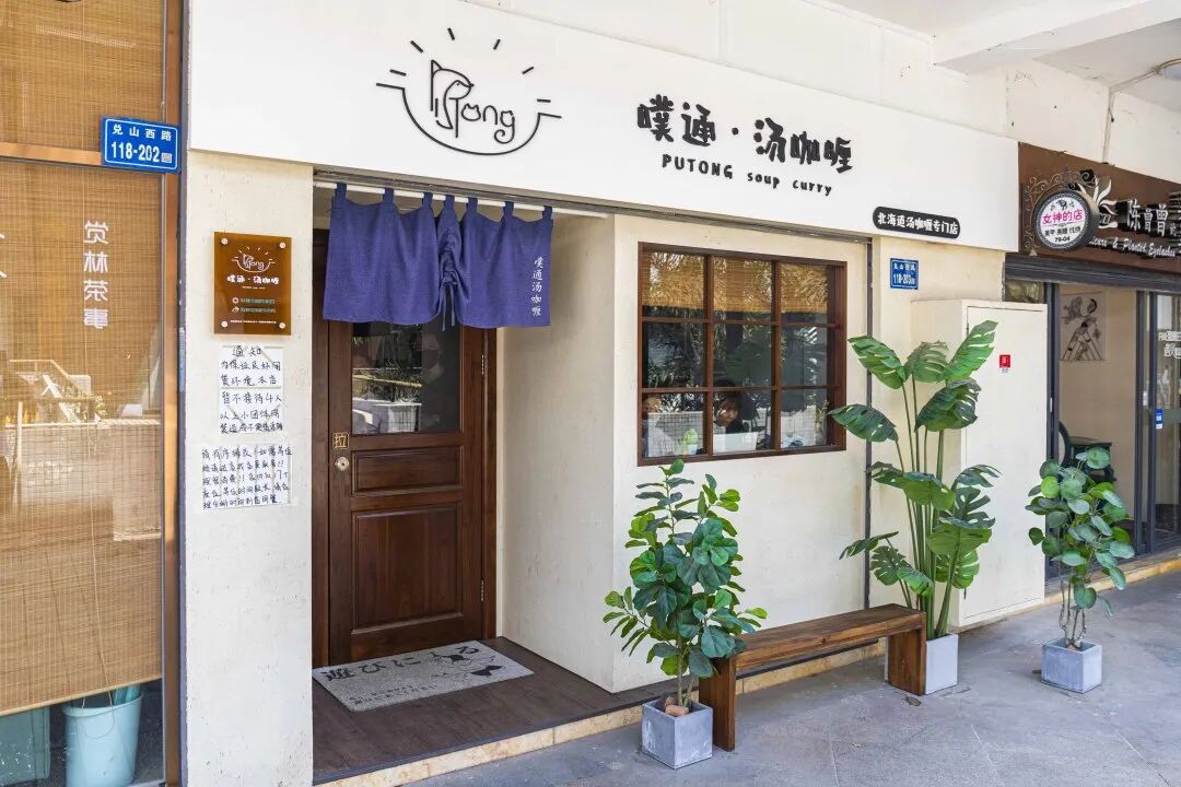 学生多的地方常常美食辈出,这家「噗通.汤咖喱」就是如此。跟着导航来到华大西门对面,上了个稍显破旧的楼梯,终于找到了此行的目标「噗通.汤咖喱」。