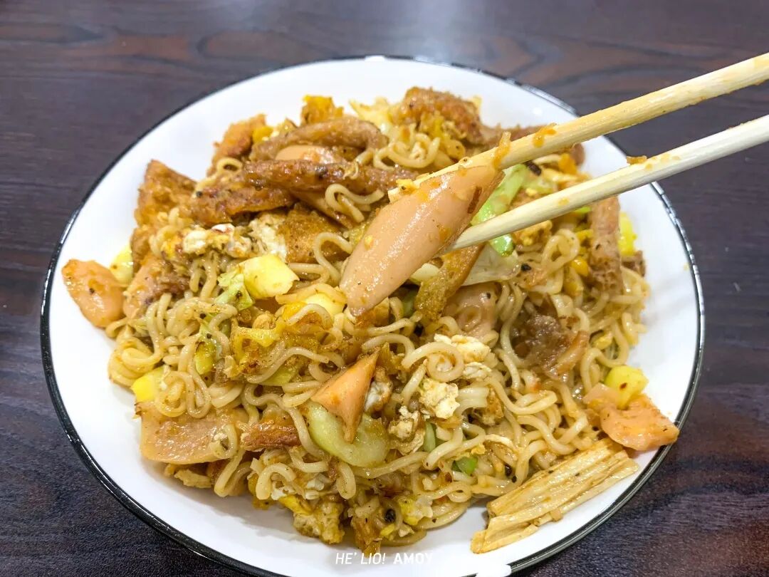 最绝的是连火腿肠的品种都出奇的全,鱼肠、淀粉肠、玉米肠......甚至连辣条都能加入面里一起炒!