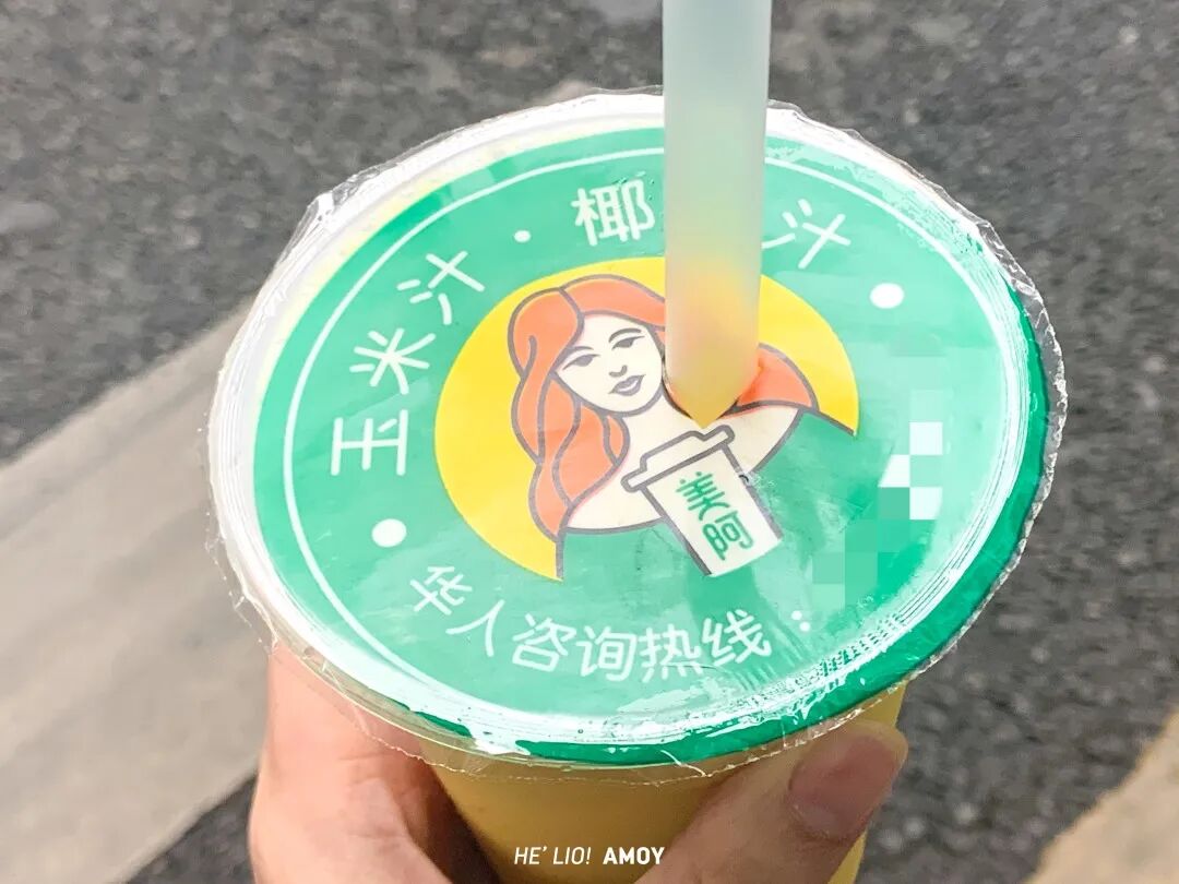 急于解决口渴问题的好料菌立马想到了就在邱思明炒食不远处的美阿玉米汁。
