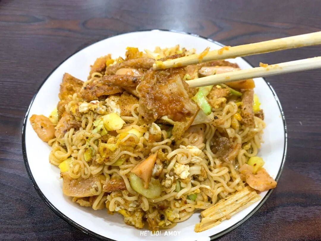 还冒着热气的炒泡面一端上桌,好料菌就差不多已经被散发的香味征服了。