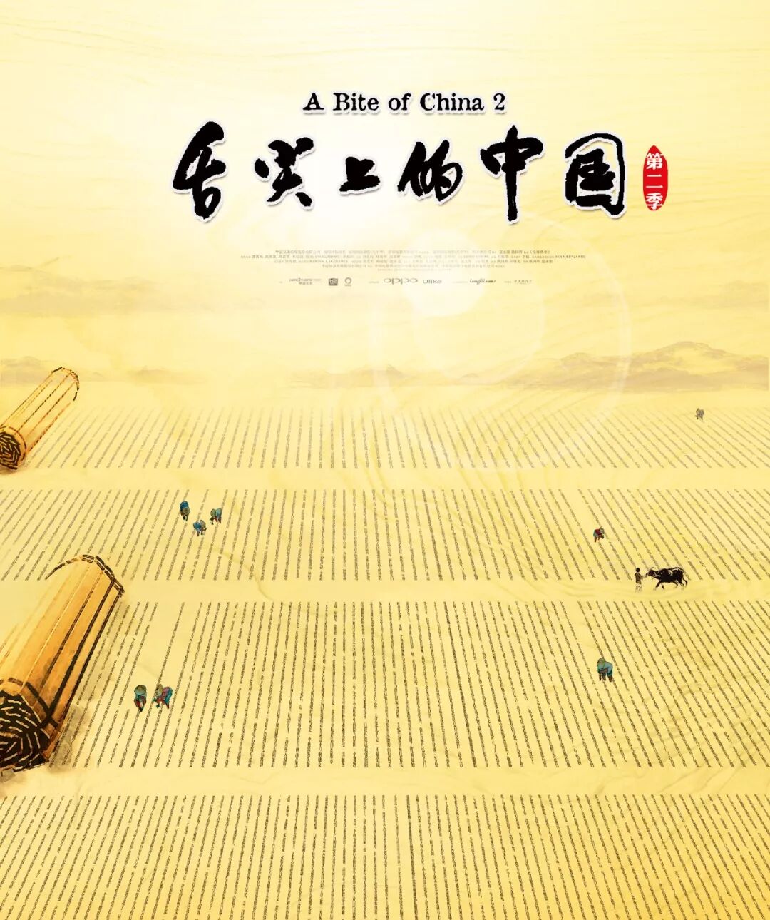 第二季海报,更多的人文风,整个画面是中国田园,牛在耕田,人们在田里种水稻,特别的地方在于这些田园由竹简的汉字组成!多年以后再看,也实在是巧妙。