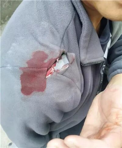 外套被砍开裂浸染鲜血