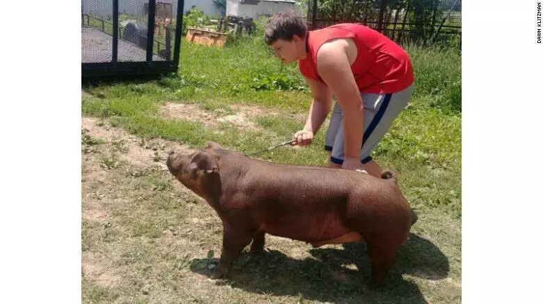 今年8月,一名15岁的少年Waylon Klitzman为了帮慈善机构募捐,拍卖了自己的宠物猪。