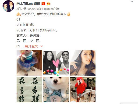 图片来源于向太微博@向太Tiffany陳嵐,版权属于原作者