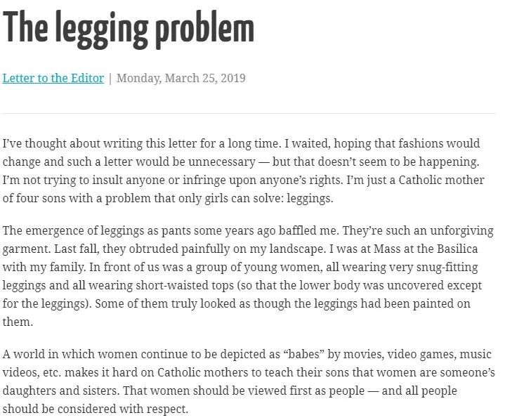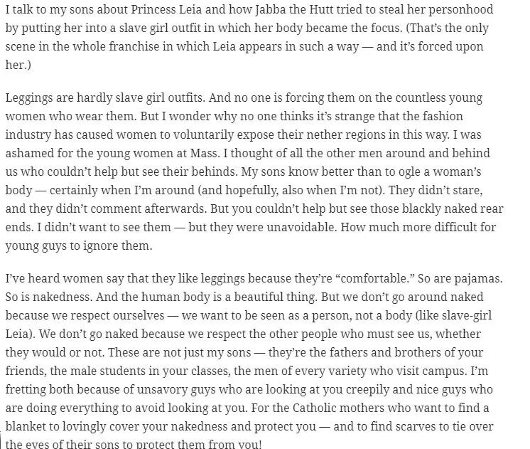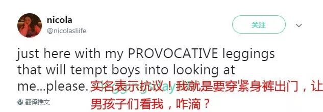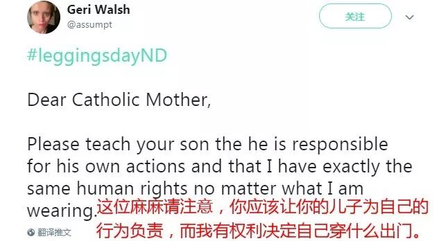 同样想对那位护子心切的美国麻麻说,如果你担心自己的儿子犯错,那么请从现在开始,教会他学会尊重女性,并为自己的行为负责,而不是在这里呼吁女大学生都不穿紧身裤。