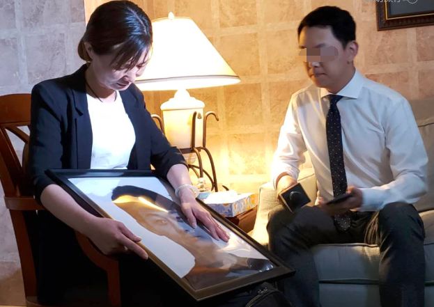 抱着儿子的照片一直在抹眼泪
