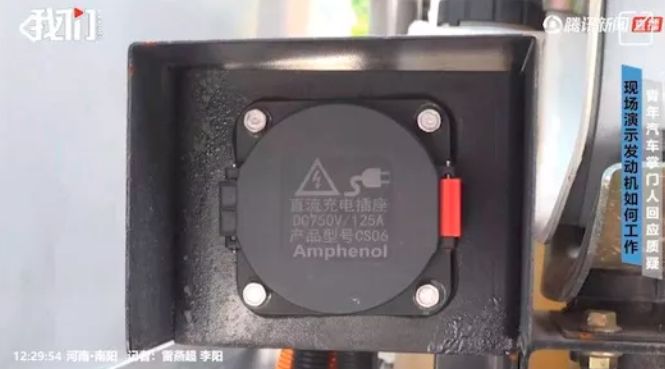 不过,据新京报记者走访车间发现,车上并且除了供应水源的管道外,还在车身发现了直流充电插座。