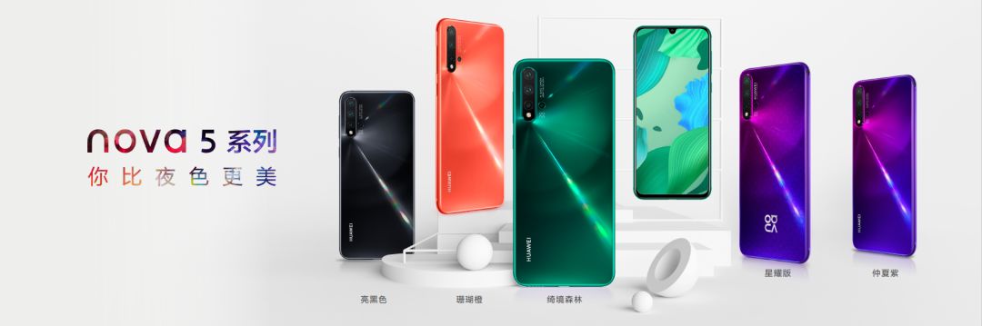 华为nova系列,一直是年轻人的心头好。这次的nova5系列更是集齐了四种炫酷色:绮境森林、仲夏紫、珊瑚橙、亮黑色。
