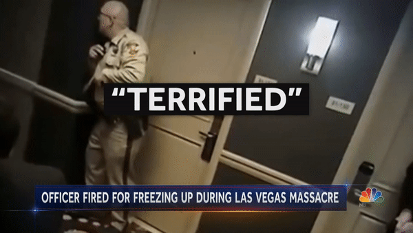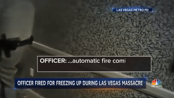 因为当枪手拿着机关枪疯狂扫射时,近在咫尺的警察Cordell Hendrex没有挺身而出,而是被吓得“僵直”,呆呆地愣在了原地。