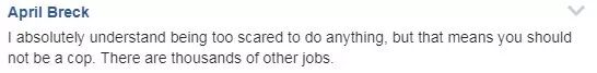 “我能理解人们内心的恐惧,但是如果无法战胜内心的恐惧,那么你就不应该做警察,世界上还有很多其他工作。”