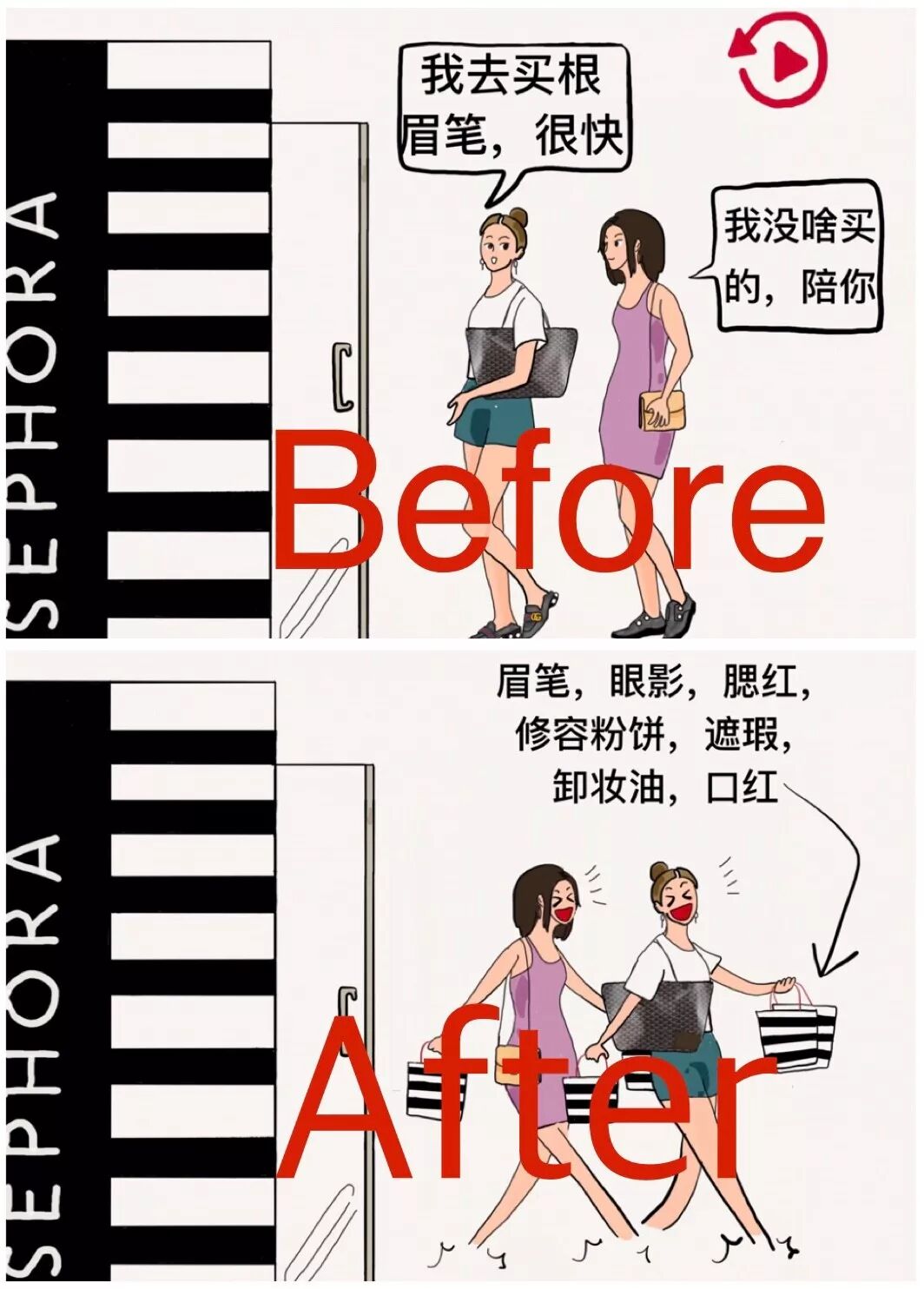 看看下面这个《中国女生丝芙兰行为图鉴》,