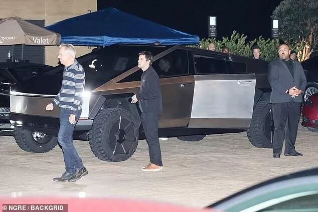 马斯克又开着Cybertruck离开。