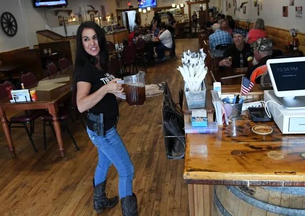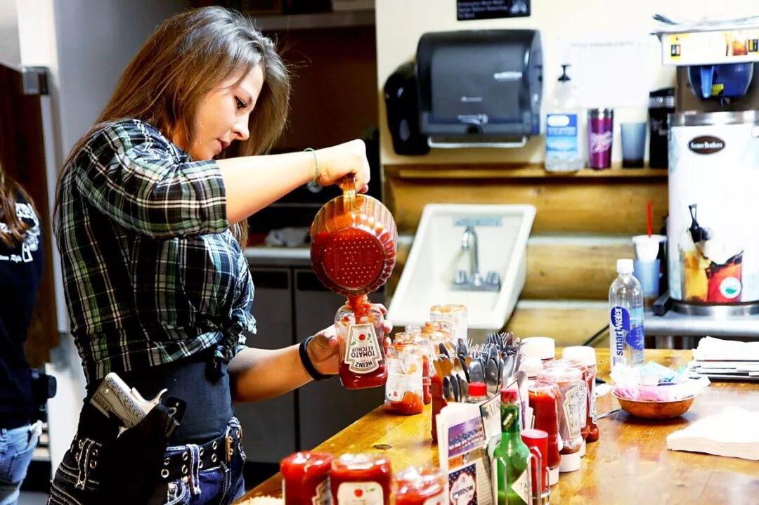 盆友们,这样的餐厅吃饭,你觉得在到底是更安全还是更可怕?你是否支持公开持枪?