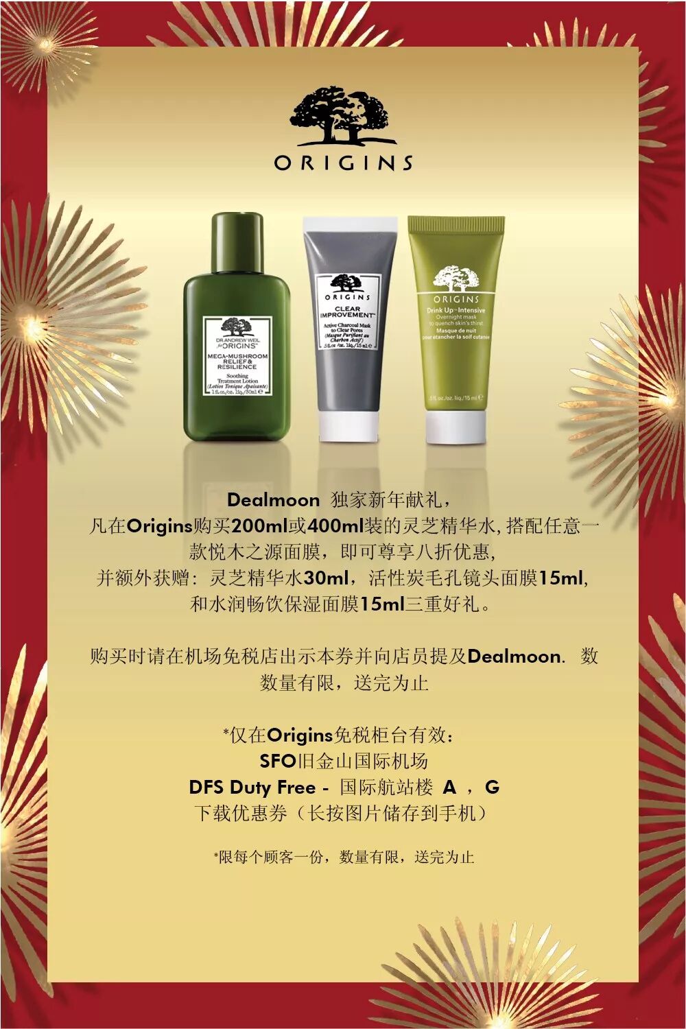 喜欢Origins的小伙伴们看这里!如果碰巧途经旧金山国际机场 (SFO),可以到Origins机场免税店康康哦,Dealmoon粉丝可享独家折扣和拿到独家礼物哦,春节出行别忘了囤些护肤品哦,送人自留都合适~