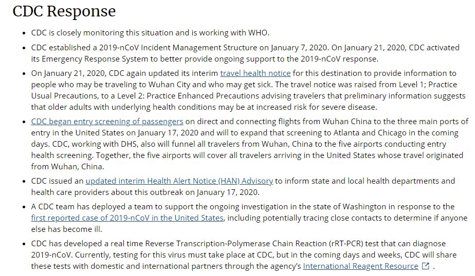 武汉每周有3个航班,直飞旧金山和纽约机场,CDC已经派遣额外约100名工作人员前往纽约、洛杉矶、旧金山三大国际机场协助筛查工作,在本周将检查范围扩大到亚特兰大和芝加哥机场。