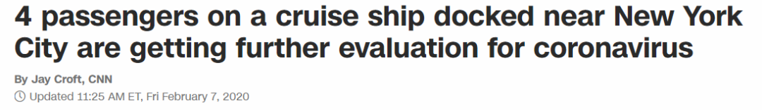 昨天(2月6日),日本厚生劳动省宣布,在当天最新得到的71份,病毒检测报告中,又有10人被感染。7日上午确认,感染人数升至61人。新确诊的41名患者已被送往神奈川县、千叶县、静冈县和东京的医疗机构进行治疗。61名感染者国籍大致已经确认:28名日本人,8名美国人,7名澳大利亚人,7名加拿大人,1名阿根廷人,1名英国人, 1名新西兰人,1名菲律宾人,3人来自中国香港,1人来自中国台湾。其中1人为重症患者。今日早间,一艘游经波多黎各圣胡安的皇家加勒比海邮轮,驶进纽约市以南的Bayonne海港。由于船内27名乘客有过中国旅行史,CDC迅速决定派出疾控检测人员,到港登船进行检查。