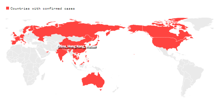 截至截至2月7日发稿前,新冠病毒在全球有25个国家发现确诊病例,包括:中国、泰国、日本、新加坡、韩国、越南、美国、法国、澳大利亚、马来西亚、尼泊尔、德国、斯里兰卡、柬埔寨、加拿大、阿联酋、芬兰、印度、菲律宾、英国、意大利、俄罗斯、瑞典、西班牙、比利时。![]()