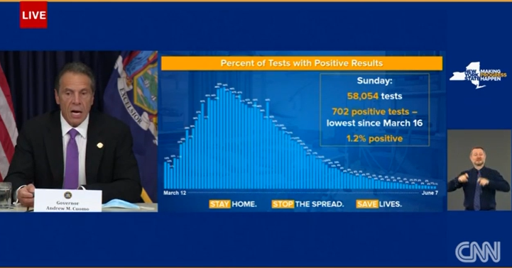 “纽约的数字告诉我们,可以重启了!” 州长库莫在今天的新闻发布会上说道。