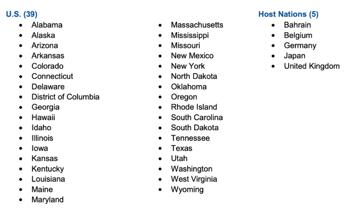 今天早上,美国五角大楼宣布,已经对44个目的地解除军事旅行禁令(针对军方内部),包括对外的5个国家,和对内的35个州。