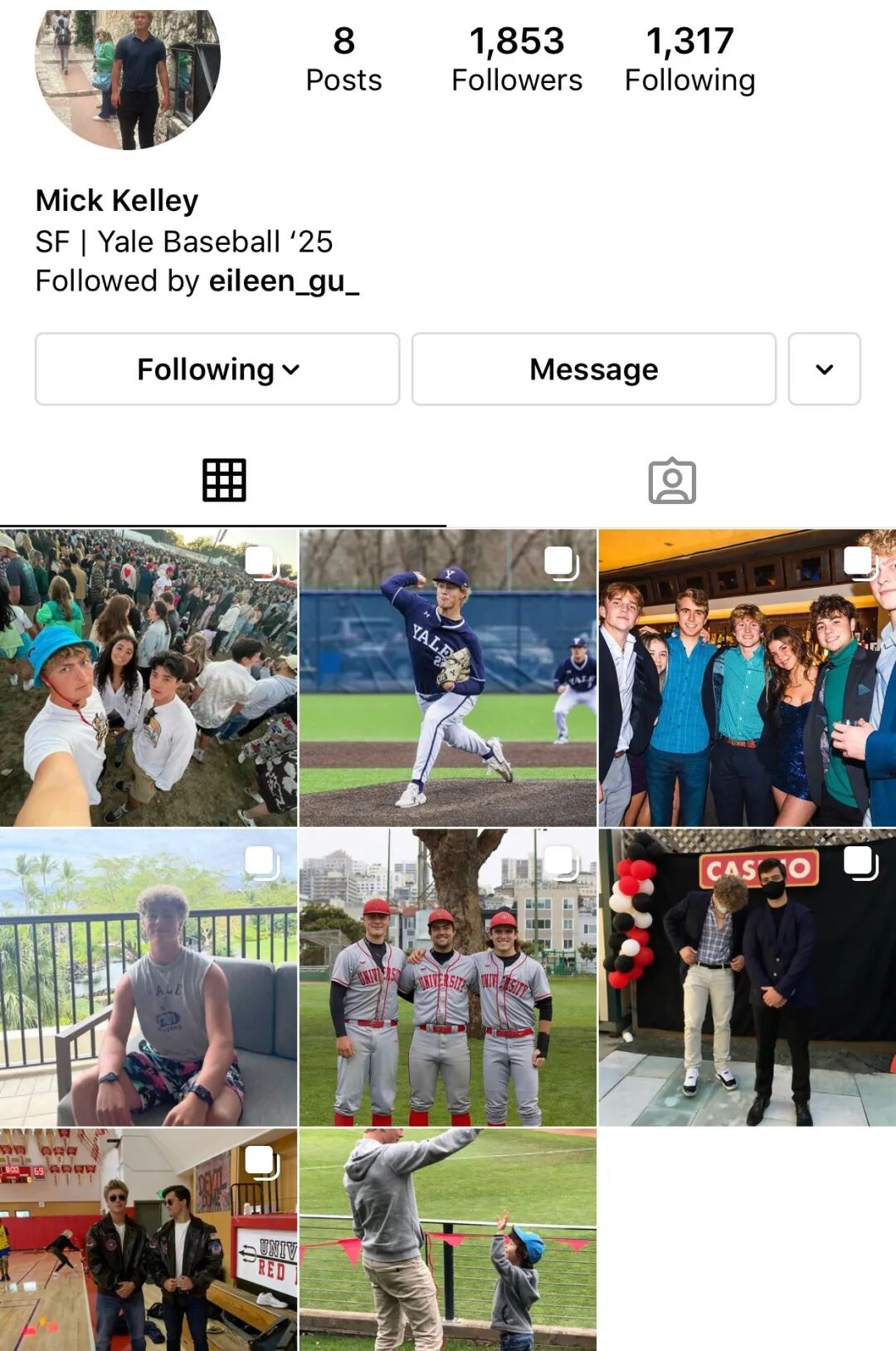 这哥们儿目前ins上总共发了8条信息,小谷留了7条