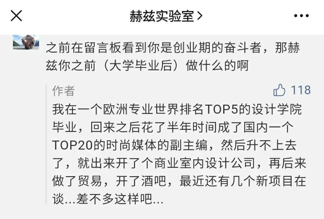 赫兹实验室创始人曾多次在公号上,树立自己行业精英的人设:
