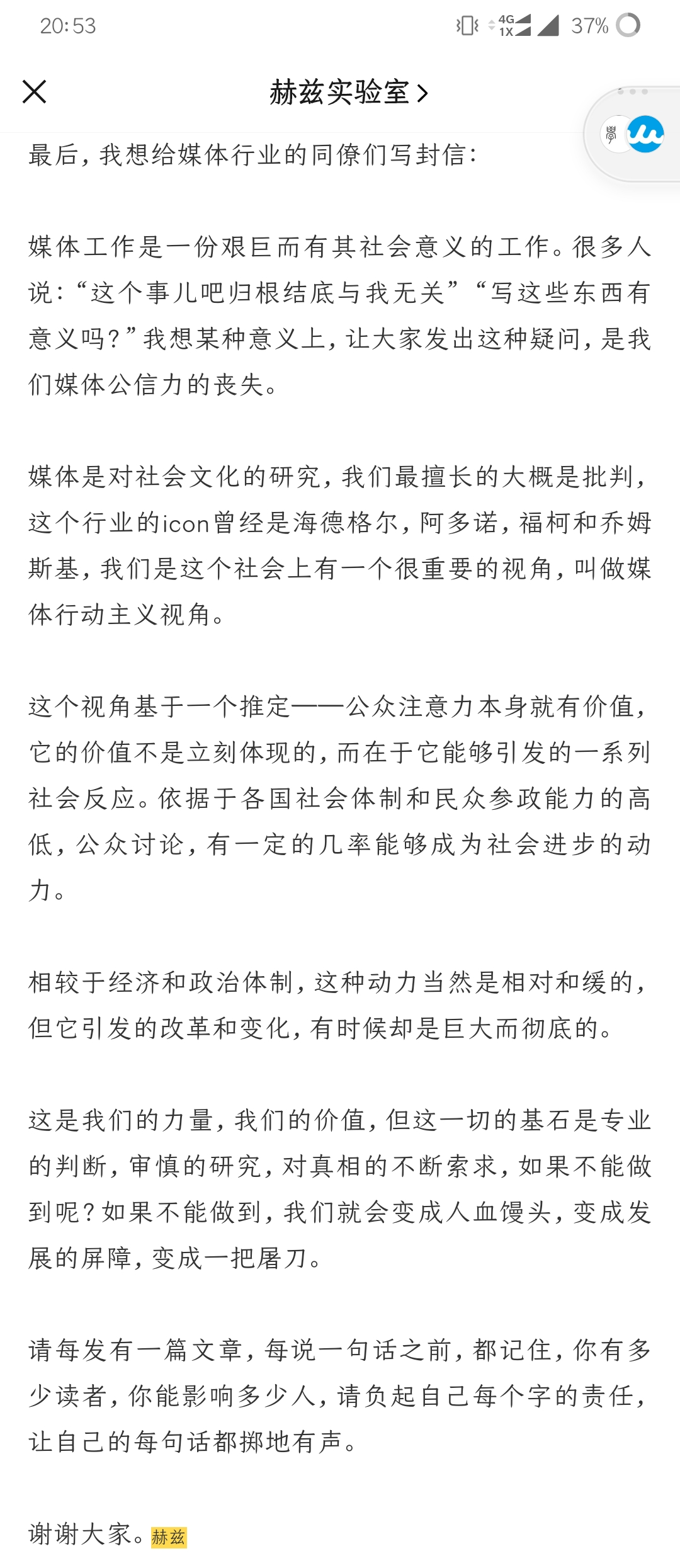 翻阅他们曾经给媒体同行的公开信,言辞恳切又论述得当,《常识》诸君都愿击节称叹。奈何,这一段却又是抄袭自《奇葩说》辩手花希在疫情期间的微博。10月6日下午,《常识》已经与花希本人核实,他及文字作者本人对于这段博文被赫兹“借鉴”一事毫不知情。