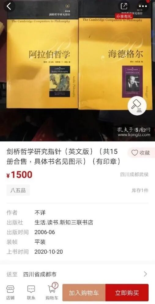 哲学系的丢书事件并未因3月28日的抢救而画上句号。4月1日,河地发现,在郭家桥书店的孔夫子网店铺中,依然有着大量的哲学系藏书在销售。