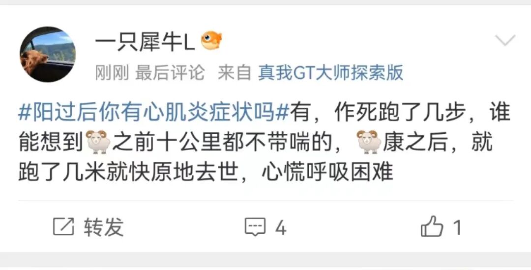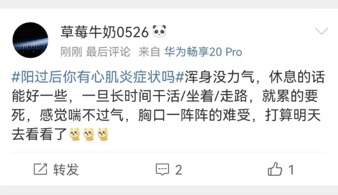 与此同时,小编发现不少网友阳康之后都出现类似心肌炎的症状。
