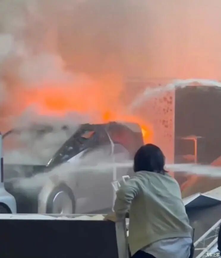 从现场视频来看,疑似为阿尔特展台的一辆概念车失火(或附近物体),视频可以看到安保人员正在往概念车浇水并扑灭了明火。