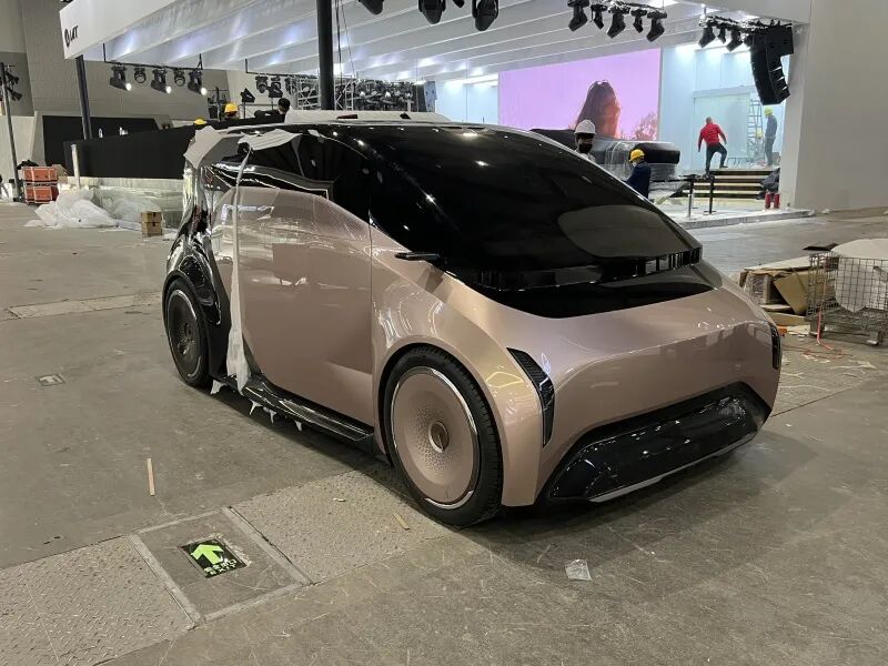 阿尔特汽车展台位于5.1号馆,与北京现代、劳伦士、兰博基尼、如祺出行等展台相邻。由于现场烟雾比较大,部分车企展台已经紧急将车衣包裹在展出车辆上。