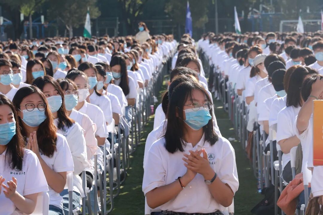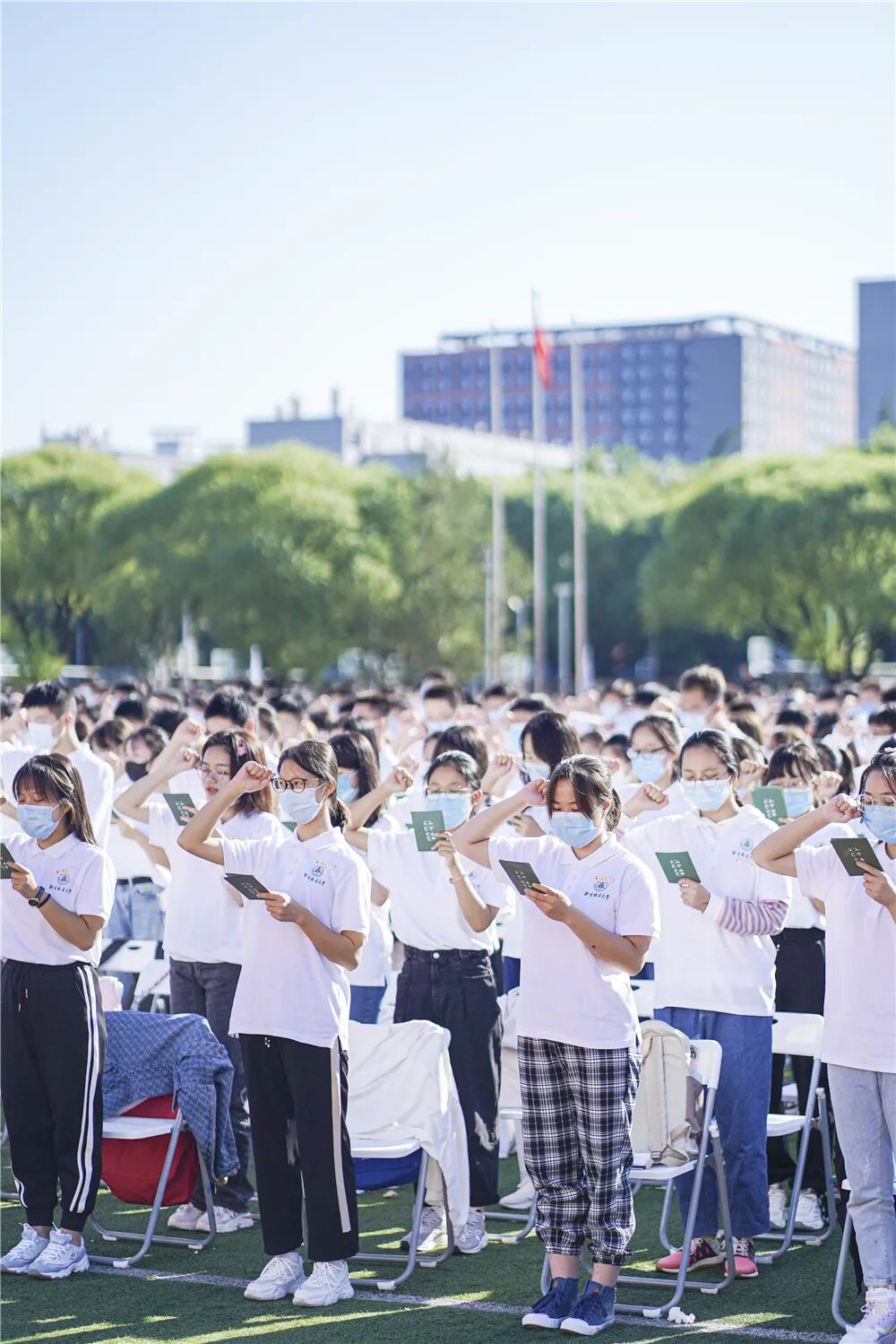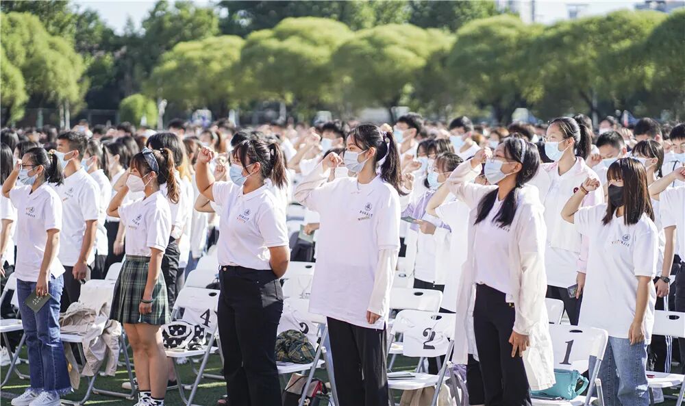 全体新生庄严宣誓。新生代表,生物学院生物类21-3班韩政锟同学领誓。