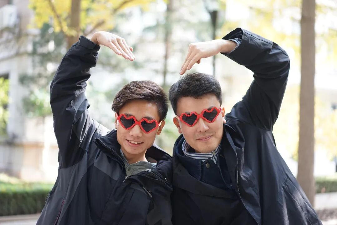 与伙伴开心地合照