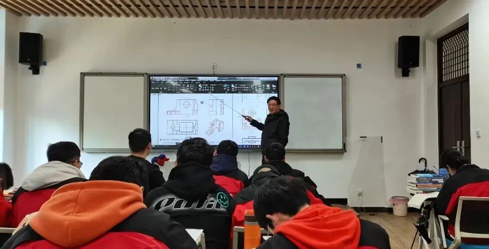 在《工程图学》的课堂上,有这样一位老师,他习惯拿着教鞭站在讲台上,时而手执教鞭走下讲台看同学们的图纸,时而针对同学的问题解答。这教鞭一拿,就是整整38年。38年,岁月化成树的年轮,鬓发染上白霜,他始终坚守教学一线,在教书育人的岗位上,奉献并热爱。有着39年党龄的他,牢记为党育人,为国育才使命,以高度的责任感和一丝不苟的工作态度讲授好每一堂课。