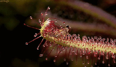 例如,小体积和大体积猎物的触碰都会使叶面开启闭合机制,但叶片后续的捕食反应却截然不同。当小昆虫开始挣扎时,叶片上更多的腺毛向昆虫聚拢直至整个叶片卷曲,从而将昆虫牢牢包裹住并消化吸收。