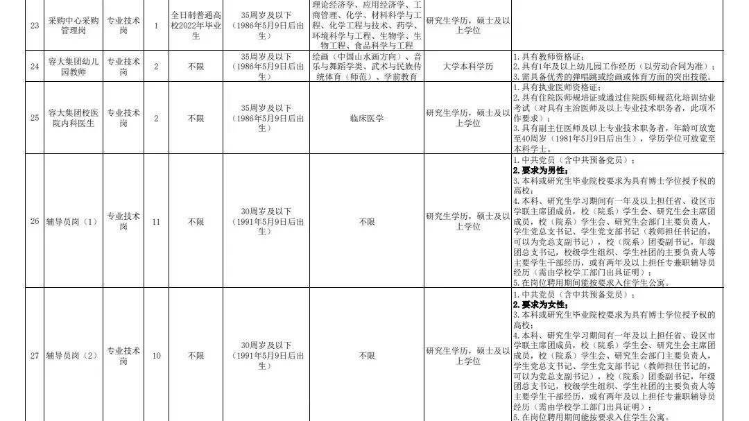 招聘岗位及条件