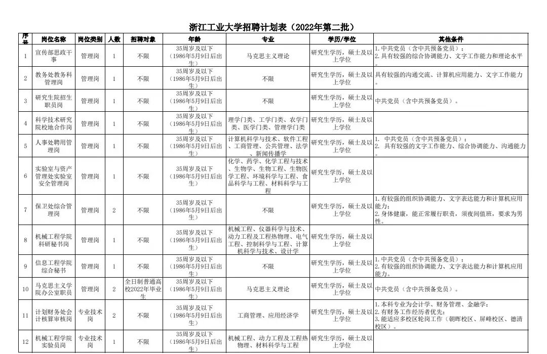 根据《浙江省事业单位公开招聘人员暂行办法》规定,浙江工业大学拟面向社会公开招聘工作人员。现将有关事项公告如下: