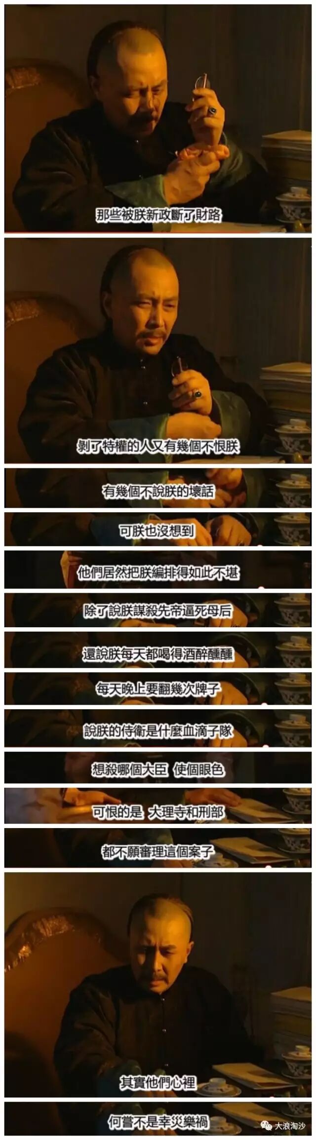 我看这一段笑的不行。是啊,投鼠忌器这个“器”是忌的谁啊,“又”无功而返这个“又”打的谁的脸啊?康熙爷何尝不明白“器”是什么,“又”是第几次了,但他一定要问出来,为什么,因为……编剧想让他这样问(大误)。因为如果不戳破这层潜规则,如果不大力反腐,建立一个高效清廉的官僚集团,那大清就要完啊。
