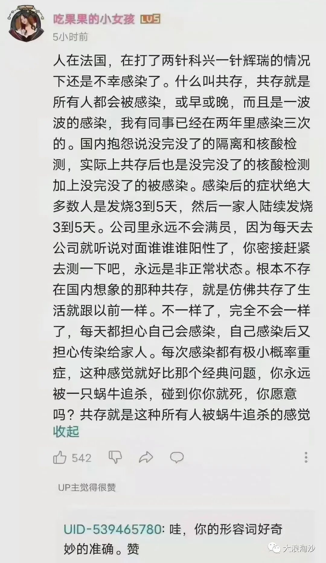 同时,必须立场坚定地反驳“放开”“与病毒共存”的言论,我们是一个十四亿人口的大国,但凡口子一开有什么混乱局面大家想象得出来,看看下面这条评论就说得很好: