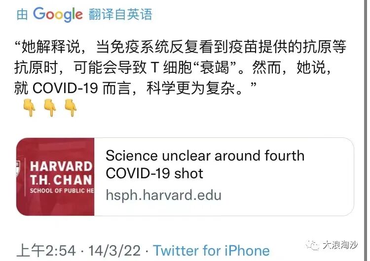 现在西方国家已经普遍开始动员打第四针了,更有学者分析第五针、第六针也必须考虑了。这样一来西方人的T细胞也有点“力不从心”了,欧美不少科学家已经在担心,如此高频率的注射“劲大”的疫苗,会引发人体T细胞的衰竭,比如哈佛大学已经有相关的研究来审视辉瑞的第四针疫苗,可能引发某些人免疫系统损伤的问题了。