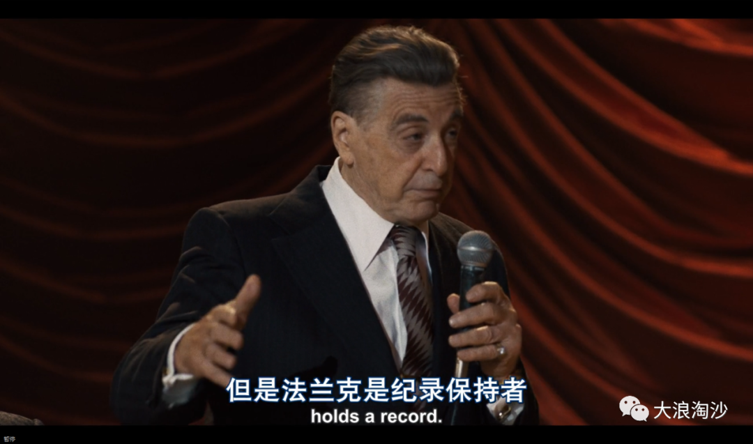 所以还是要强调一遍,《爱尔兰人》这部电影,是打着种族/移民的名字,挂着黑帮电影的“羊头”,卖着工会历史的“狗肉”,非常具有参考价值。我们的主角法兰克也具有双重身份:一方面是布法利诺黑帮家族最得力的杀手,另一方面是工会明星、工人之友,保持着整个工会里被逮捕最多的记录。
