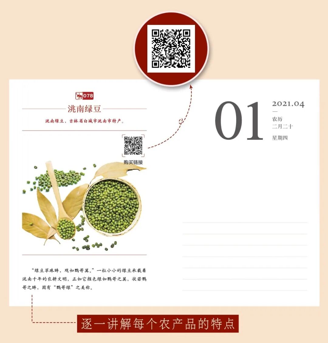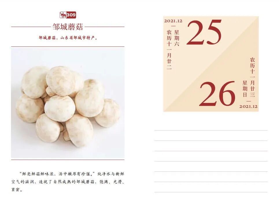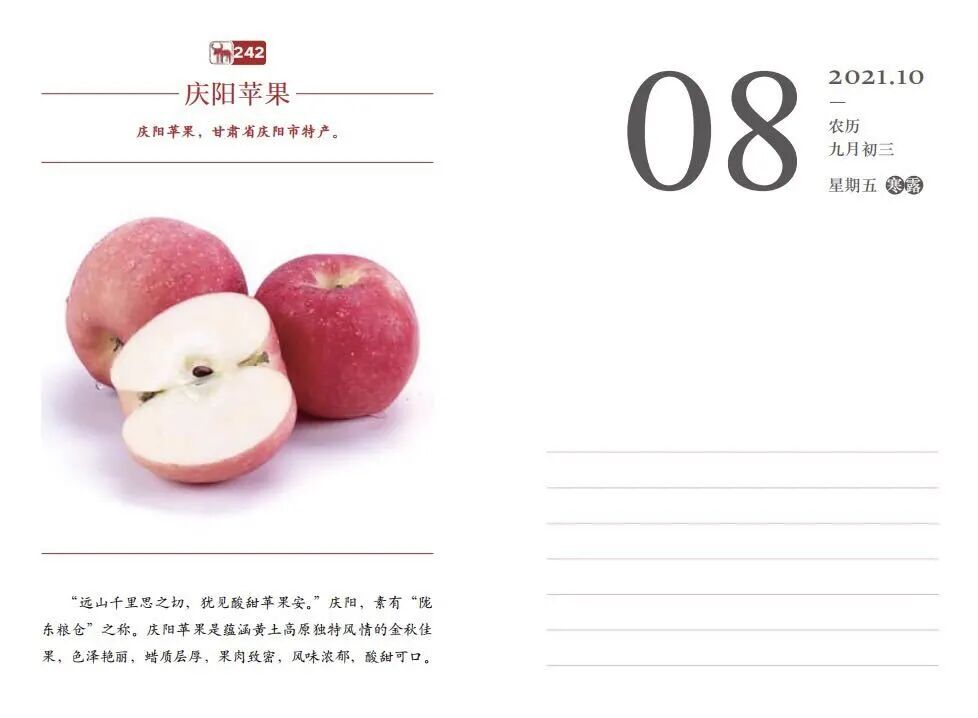 一物三用,既是一本日历,也是一个记事本,一册优质农产品目录式小百科,更可以扫码看相关特色农产品的区域介绍,一册满足读者多种需求。