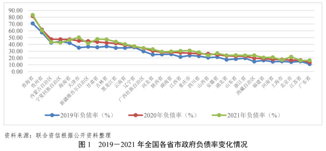 2019-2021年,青海省政府债务余额规模持续增长,2021年底为2787.19亿元。2019-2021年,青海省政府负债率分别为70.88%、81.65%和83.28%,持续上升。2021年,青海省政府负债率和债务率均在全国各省(自治区、直辖市)中均处于很高水平,债务压力大。